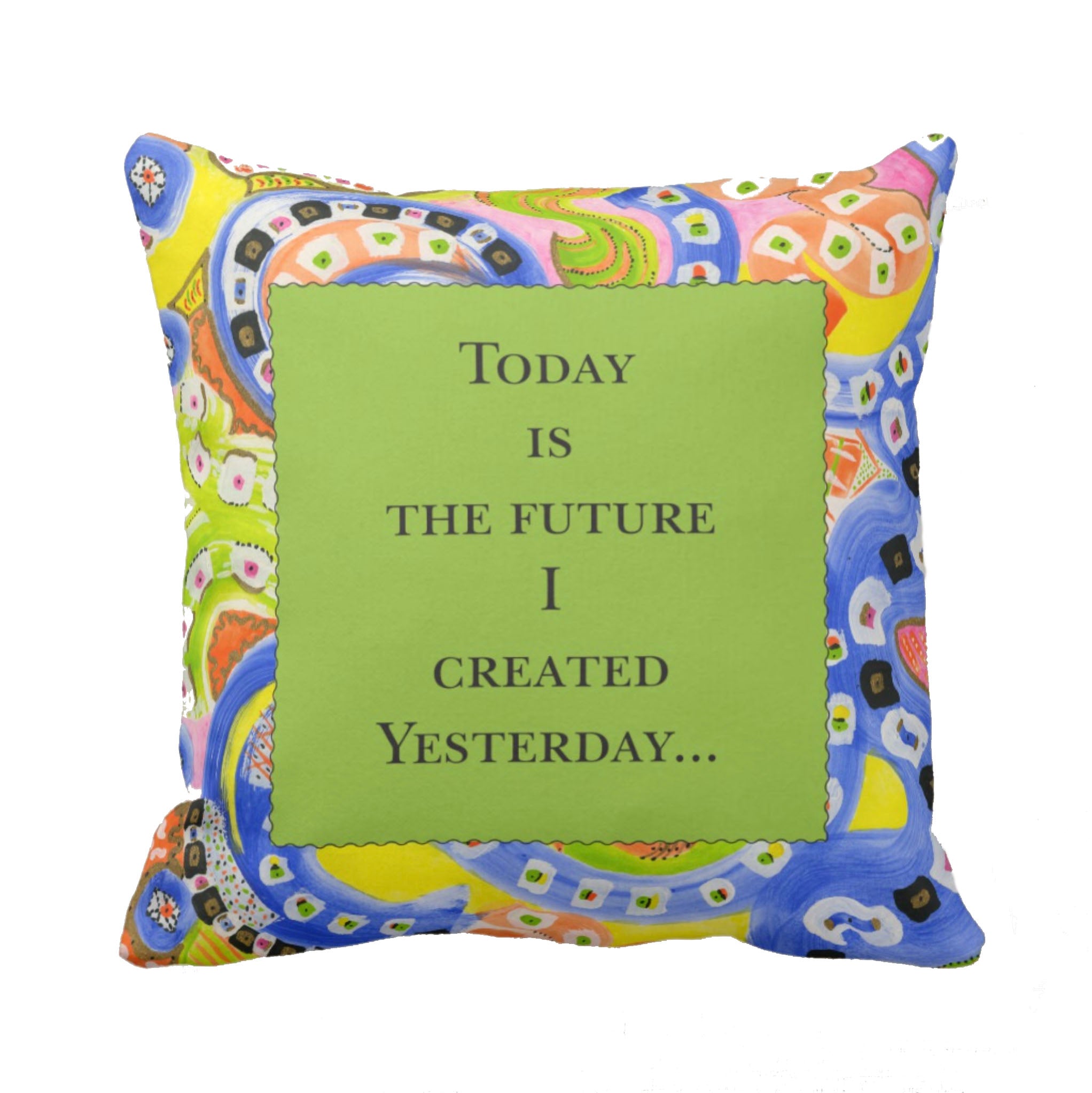 "Today is the future" Blue Wave Pillow/ Lime Green